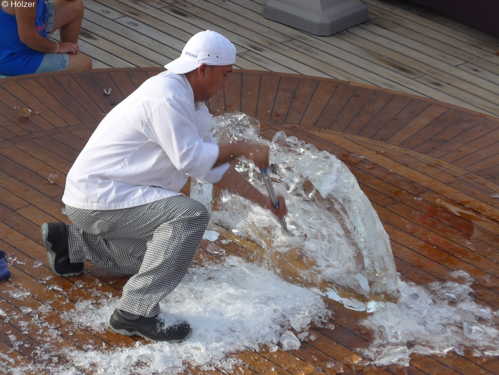 Geboten wurde unter anderem ein Eisschnitzer, der innerhalb weniger Minuten aus einem Eisblock eine Skulptur herausarbeitete. Die Zuschauer sollten im Anfangsstadium dieser Arbeit raten, was es denn werde.