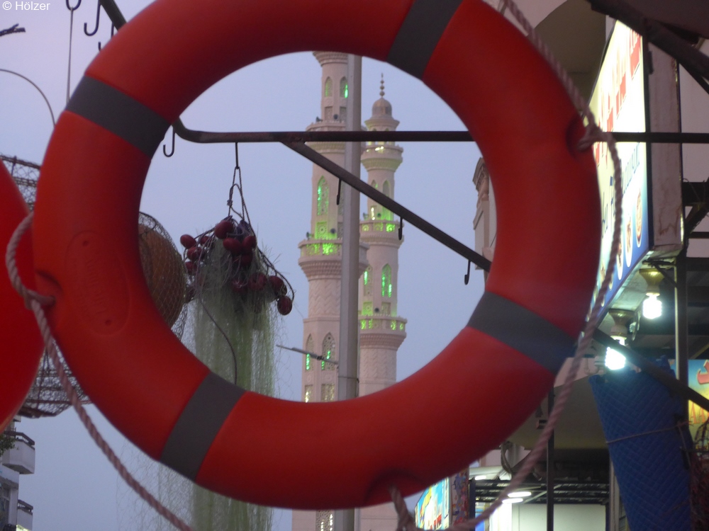 Nachdem sich unser Ärger gelegt hatte, ging es in die Stadt auf Erkundungsgang. Zwar hatten wir keinen Stadtplan und auch keine Vorstellung, was und erwartet, aber man konnte vom Hafenausgang aus eine große Moschee sehen, die man leicht zu Fuß erreichen konnte.