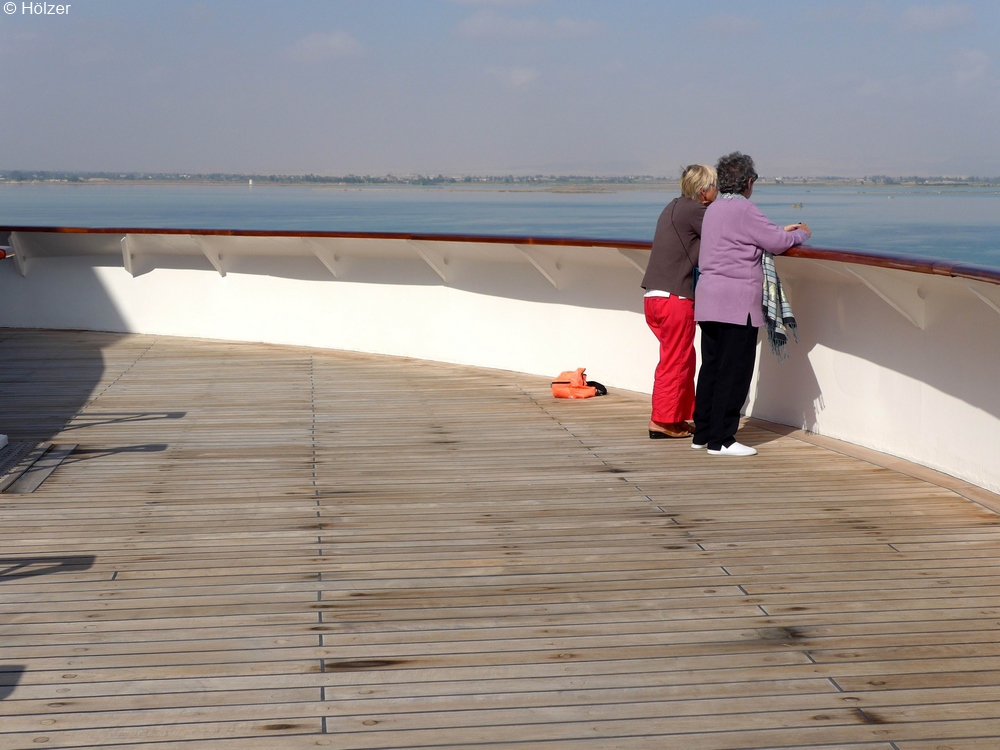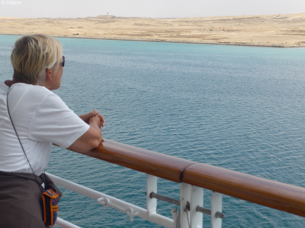 Einem Ehepaar, das an einem benachbarten Tisch Rummikup spielte, entgleisten ob dieser Aussage fast sämtliche Gesichtszüge und sie flüsterten mir zu: “Weges des Suezkanals haben wir doch diese Reise von Dubai nach Venedig überhaupt gebucht.“