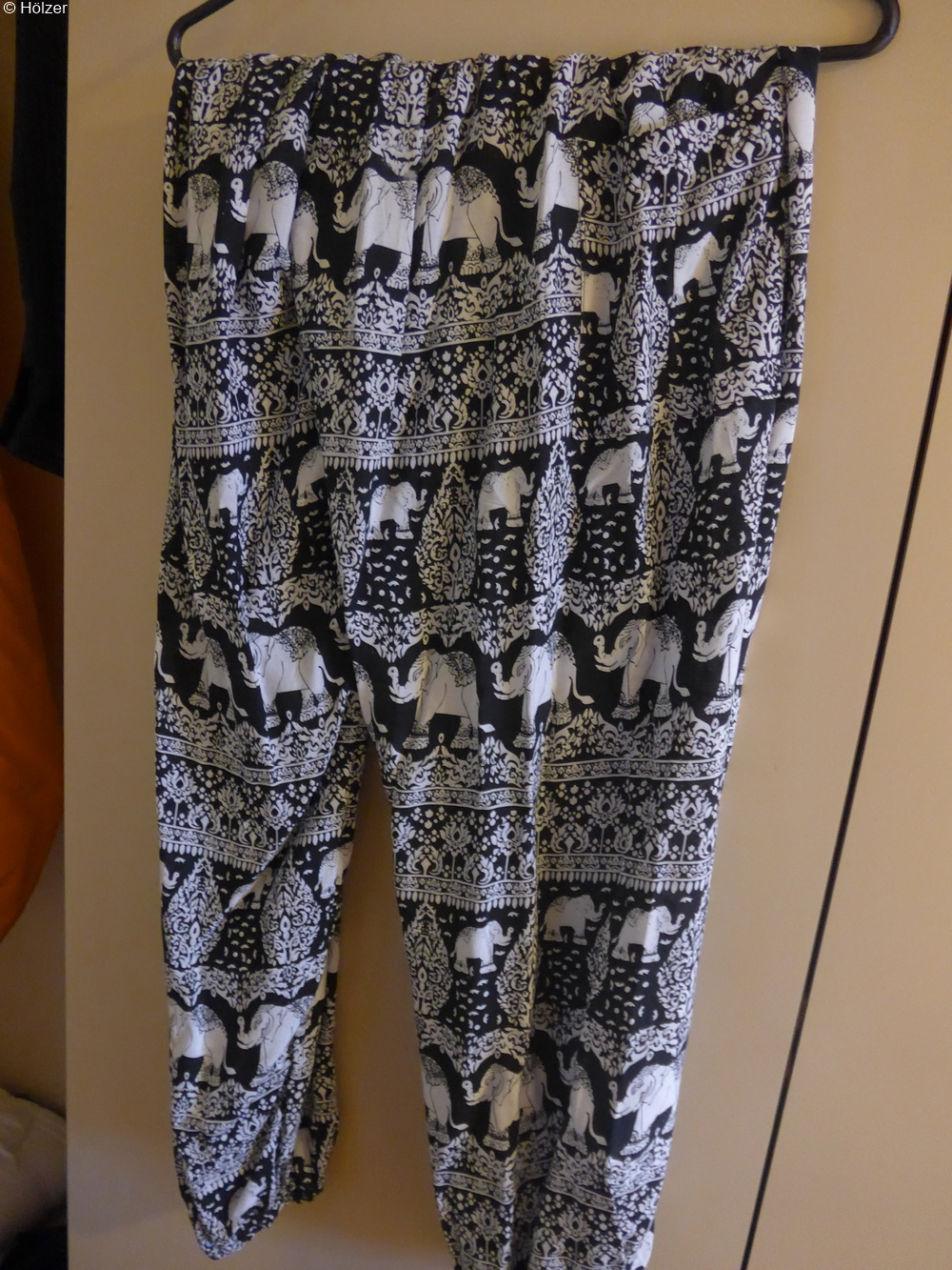 Interessant war, dass es hier die absolut gleichen, leichten, bedruckten Baumwollhosen wie in Indonesien gab, wo wir ja auch fleißig eingekauft hatten. Dort zahlte man für die Hose je nach Verhandlungsgeschick zwischen 5 und 8 US-Dollar (4,50€ bis 7,20€), während man hier ordentliche 16€ bis 18€ hinlegen musste, Hätten wir eine genügend große Anzahl Hosen in Indonesien gekauft (ca. 3.800 Stück), hätten sich die Reisekosten für uns beide durch die Ersparnis locker amortisiert.