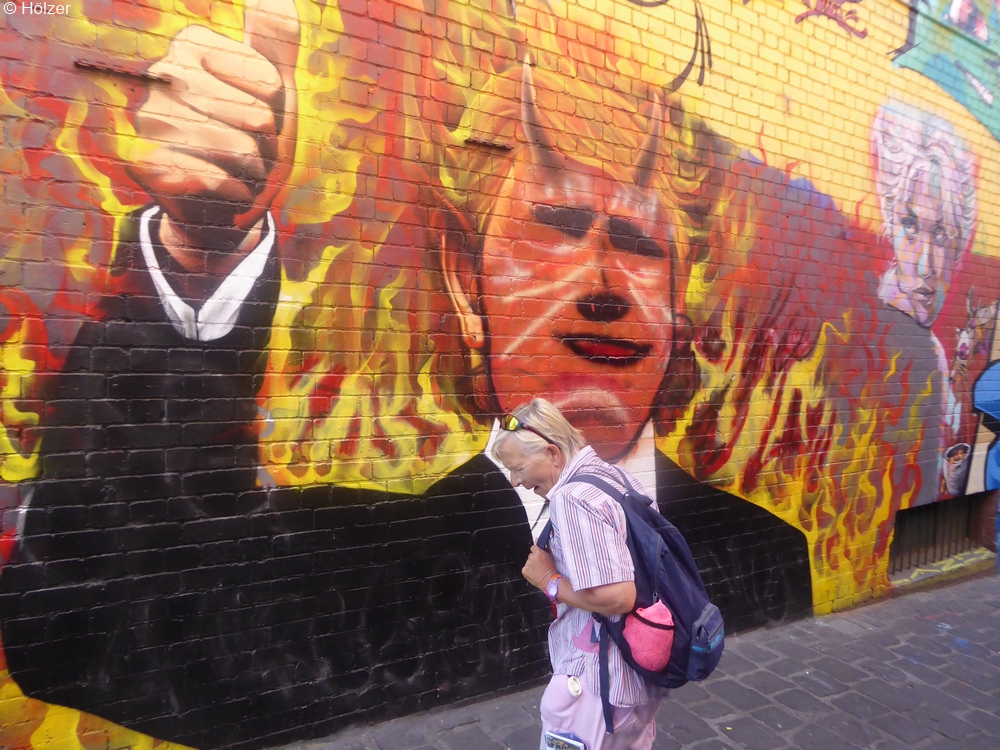 Eine kleine Seitengasse mit gekonnten großflächigen Graffitis stellte für uns eine weitere Sehenswürdigkeit dar, die in keinem Reiseführer beschrieben ist