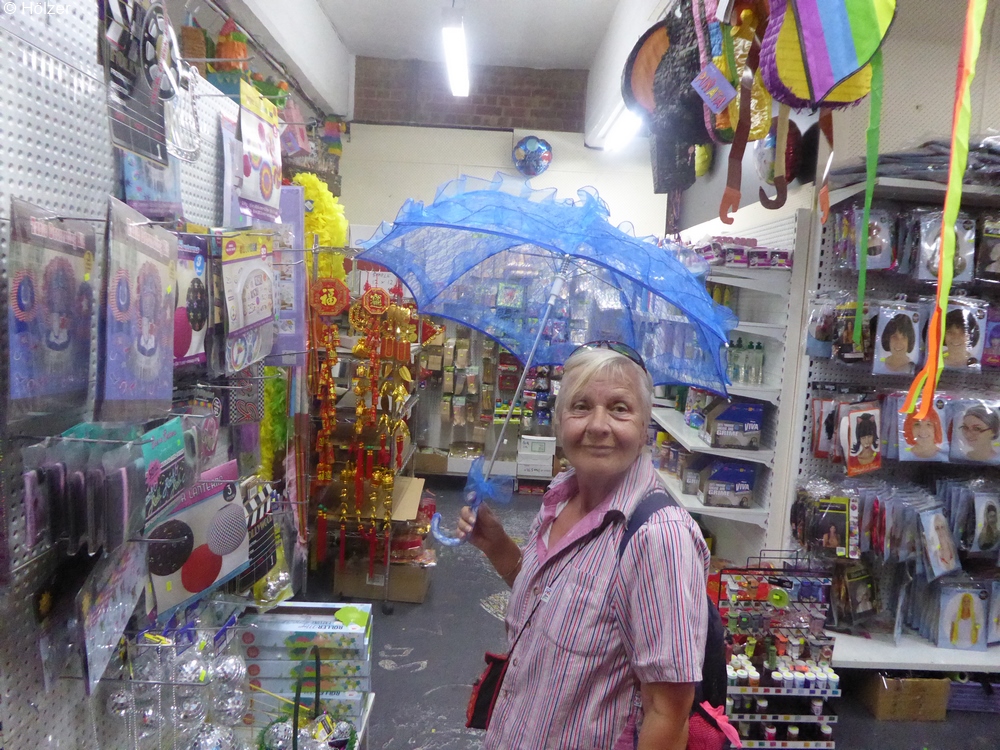 Als viel interessanter stellte sich ein Laden mit seinen teilweise skurrilen Artikeln in der Nähe des Marktes heraus. In dem Sortiment von Halloween-, Party-, und Scherzartikel, Faschingskostüme und Haushaltswaren gab es eigentlich nichts, was es nicht gab.