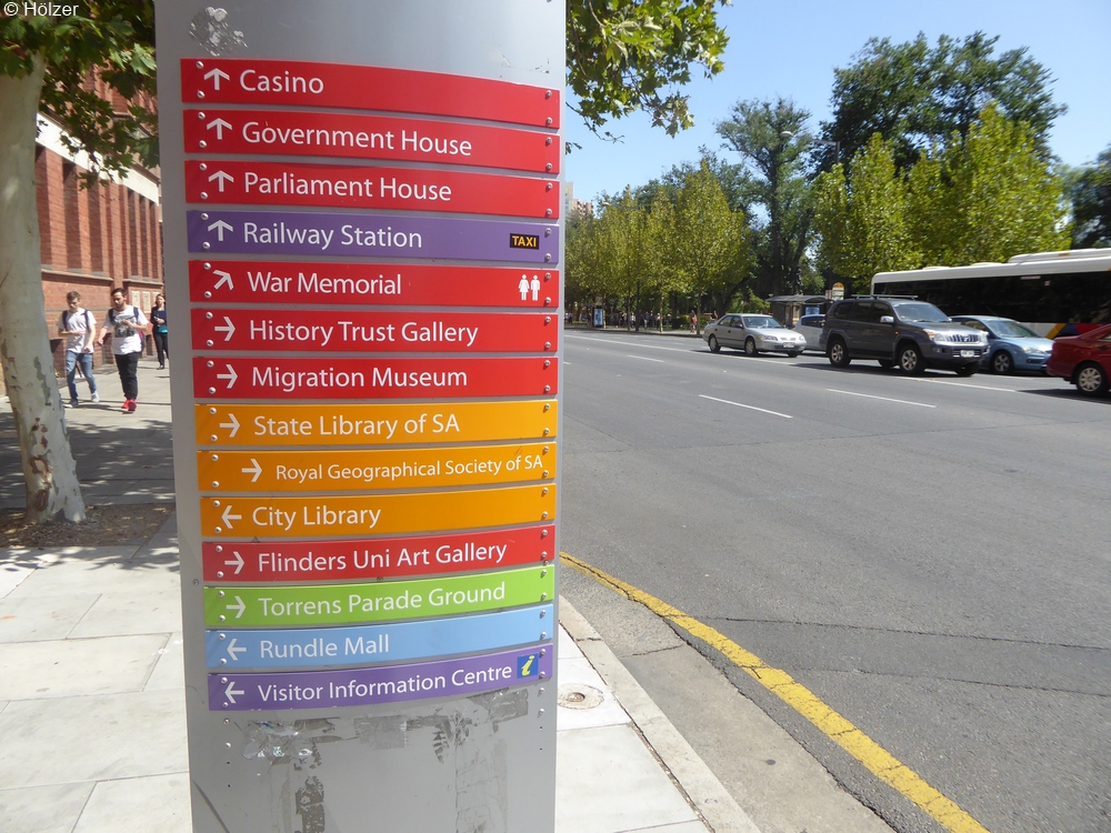 Mit dem Stadtplan in der Hand starteten wir unserer Tour. Gleich hinter dem Bahnhof, am Fluss Torrens, lagen das Casino, Convention Center und Festivalcenter, alles Gebäude, die im Stadtplan als sehenswert verzeichnet waren. Und so erfüllten wir brav unsere touristische Pflicht.