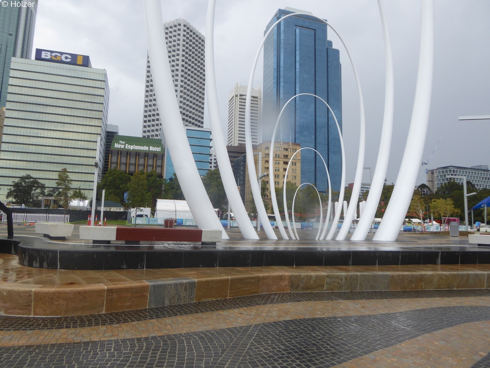 Nach Sydney, Melbourne, Adelaide war unser Interesse am Großstadtleben eher eingeschränkt. Der Stadtplan zeigte, dass der Elisabeth Quay am Ufer des Swan River nicht allzuweit von der Central Station Perth entfernt ist und wir aus Erfahrung wussten, das Flussufer in Städten oft recht nette Ziele sein können.